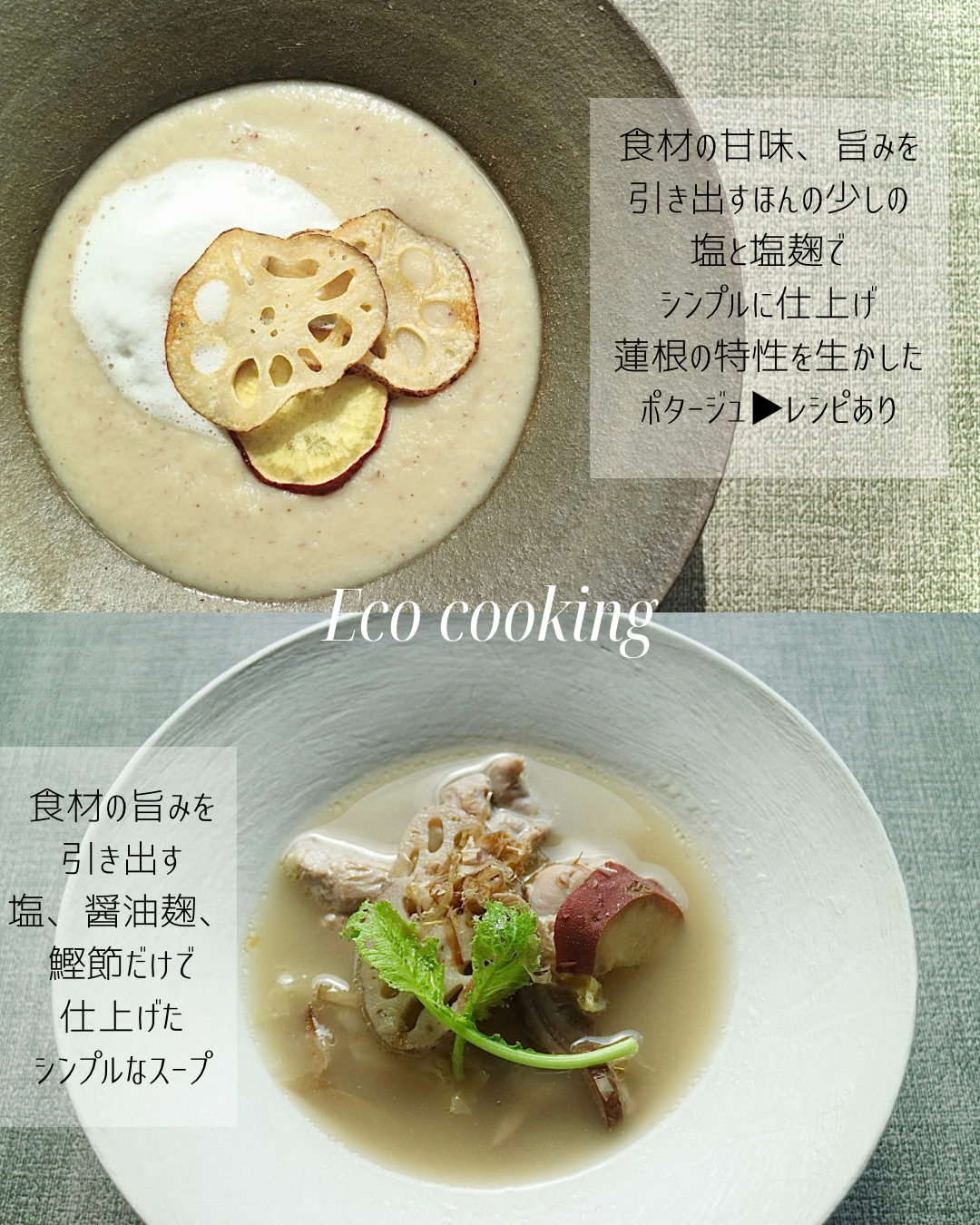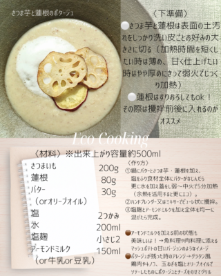 ※ポタージュレシピ追記⚪️蓮根のデンプンが加熱により糊化する特性を活用したレシピなので、すりおろし蓮根の場合は加えた直後にとろみが出てくるまで暫く弱火で加熱がポイント
